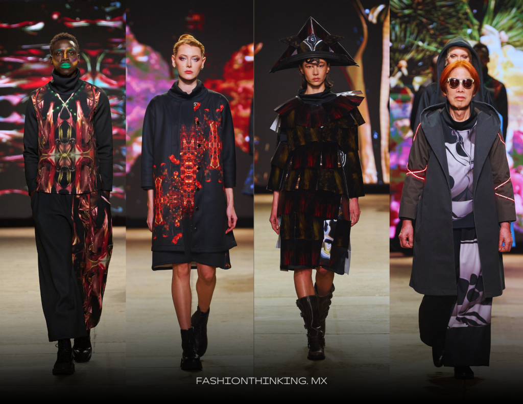 TARY, diseñadora de vestuario en Tokio, presentó su colección Animism durante el 3er Show del Global Fashion Collective en NYFW, basada en la idea primigenia de la existencia del alma en la naturaleza y los objetos, un concepto que surge de la profunda sensibilidad de la cultura japonesa y su respeto por ellos.