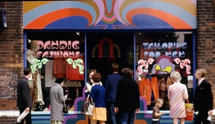 It is said that when Dandie Fashions first opened its doors, the members of The Rolling Stones bought the store’s entire stock. They specialized in double-breasted jackets with velvet cuffs and lapels, garments that musicians like Brian Jones of The Rolling Stones popularized among other musicians and fashionistas of the era. It was rumored that if you were lucky, you might run into Brigitte Bardot browsing the shop.